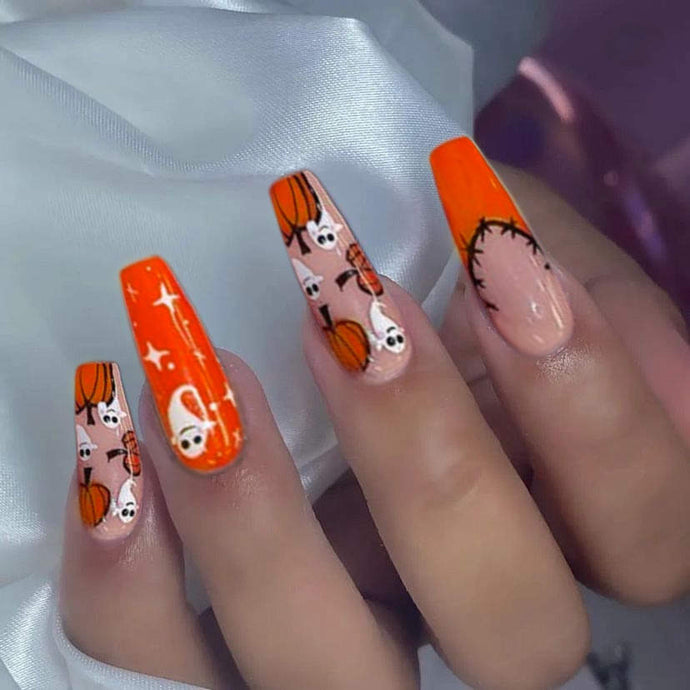 Orange Pumpkins & Ghosts Spooky Press On Nails